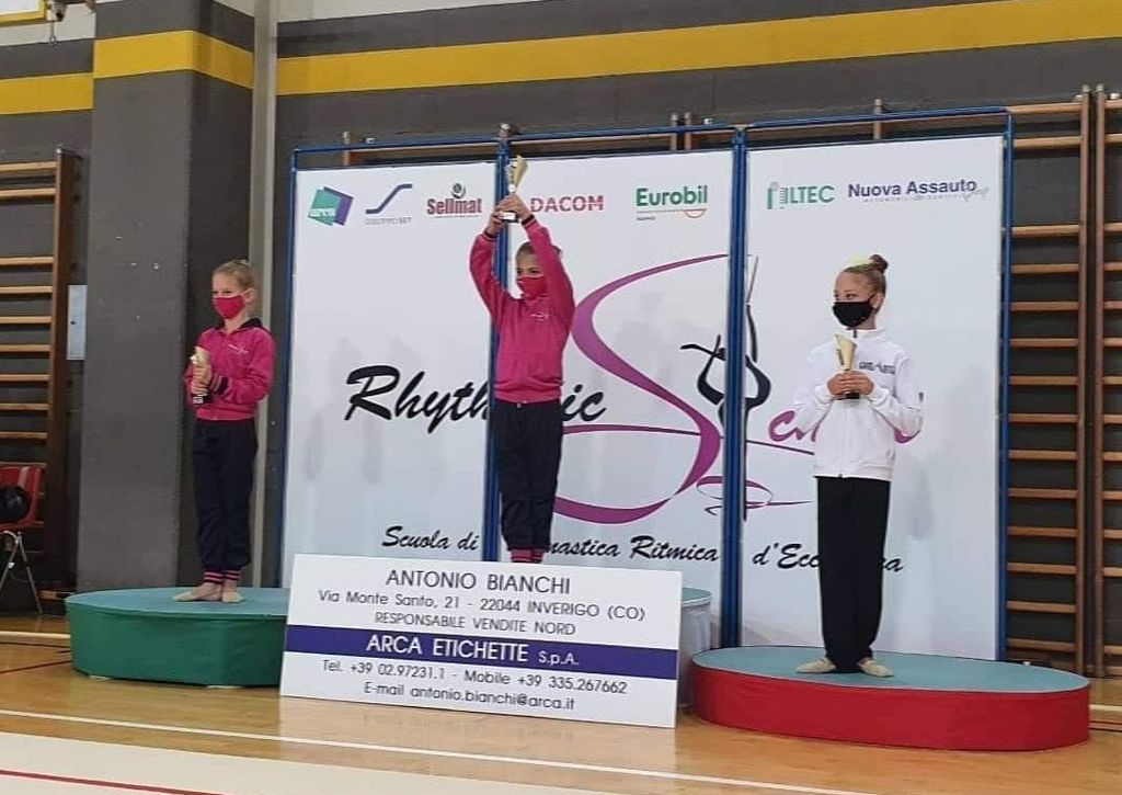 La giovane atleta si è distinta nelle differenti prove della competizione, ottenendo unpunteggio di 9,550 al corpo libero, 8,325 alla fune e 10,775 alla palla, concludendo così con unpunteggio totale di 28,650 che l’ha portata al terzo gradino del podio.