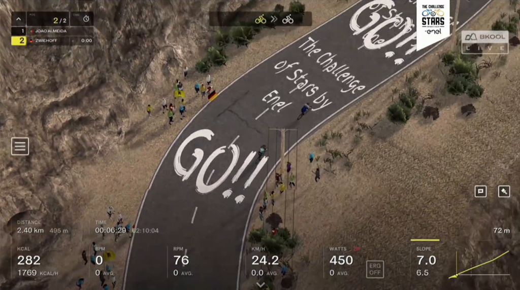 La seconda edizione di The Challenge of Stars by Enel si è conclusa con i successi di João Almeida e Ben Swift, primi rispettivamente nel torneo degli scalatori e dei velocisti organizzati da RCS Sport in collaborazione con Bkool, con il presenting sponsor Enel, e i top sponsor Tissot (official timekeeper) e Würth MODYF e i due official partner Toyota (official car) e Serena Wines (official wine). Il torneo degli scalatori si era aperto con i quarti di finale: Giulio Ciccone, vincitore della prima edizione del torneo, ha raggiunto le semifinali ai danni del vincitore dell’ultimo Giro d’Italia Tao Geoghegan Hart; João Almeida ha sconfitto il belga Harm Vanhoucke.