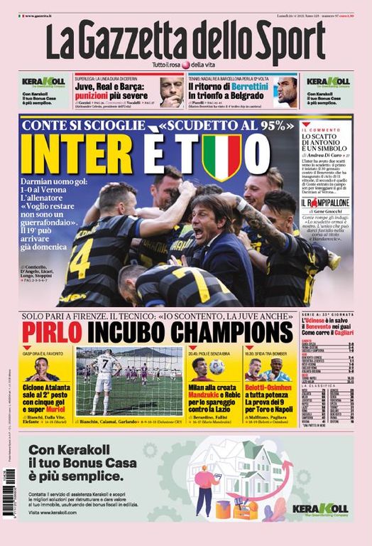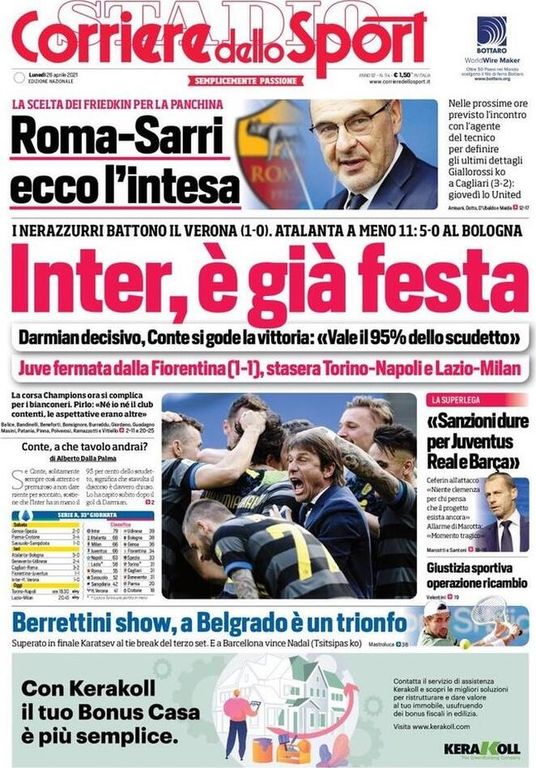LE PRIME PAGINE DEI QUOTIDIANI SPORTIVI DI OGGI 25 APRILE