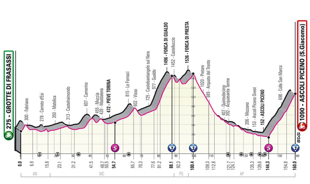 Tappa 6, Grotte di Frasassi - Ascoli Piceno (San Giacomo), 160 km