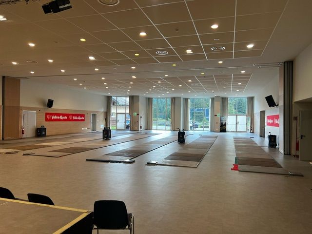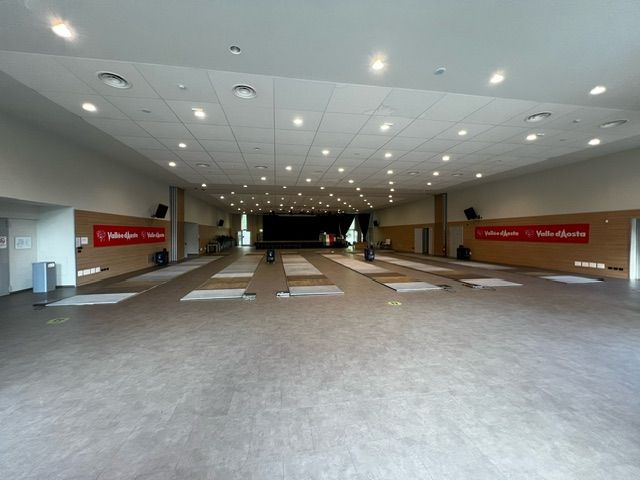 I 16 sciabolatori, agli ordini del Commissario tecnico Nicola Zanotti, si allenano nei locali della sala polifunzionale Monterosa Terme di Champoluc all’interno della quale sono state allestite otto pedane.