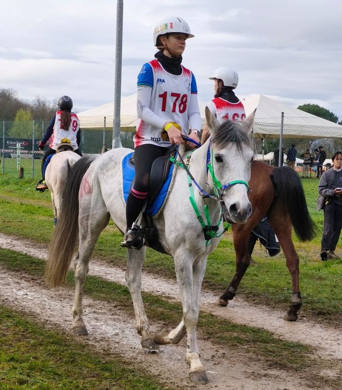 Nella categoria successiva CEIYJ2* di 120km con un giro finale ai 19,16 km/h troviamo Giorgia Pisano con Zaghaia dei Laghi nella 4^ posizione. Cavalla che riconferma le sue potenzialità dopo la medaglia di bronzo di squadra conquistata all’europeo 2024 svolto in Sardegna.