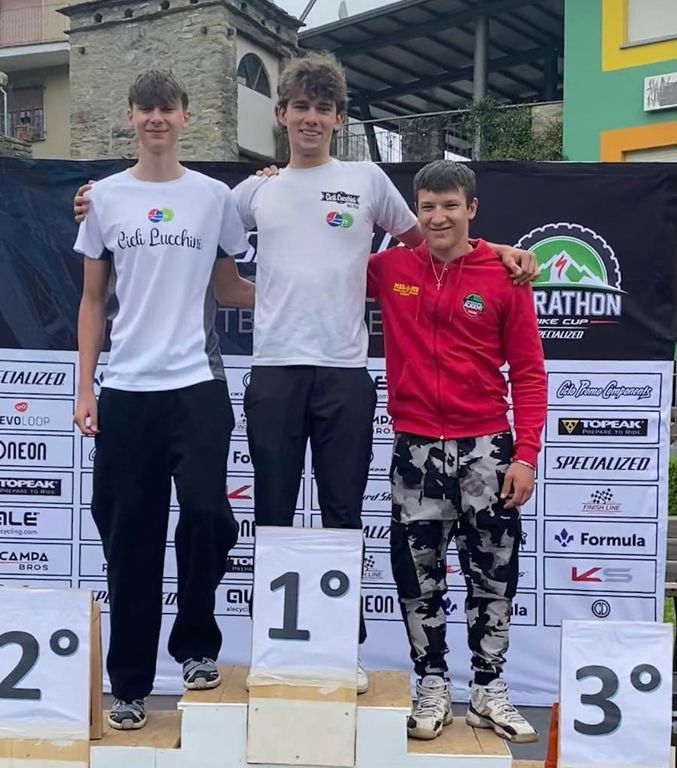 GranFondo Pedalanghe Mtb, oggi, a Cossano Belbo (Cuneo) con i ‘biker’ del Cicli Lucchini grandi protagonisti sul 42 km e 1700 metri di dislivello del tracciato. È terzo assoluto e Open Stefano Gerbaz (Bike Busters; 2h 10’21”) nella gara vinta da Diego Rosa (Fol Mtb; 2h 05’17”) davanti a Lorenzi Trincheri (Bike Busters; 2h 07’46”). In 19° e 26° posizione assoluta, primo e secondo della categoria Juniores la coppia del Cicli Lucchini Alessandro Fantone (2h 27’01”) e Erik Henriod (2h 34’02”).