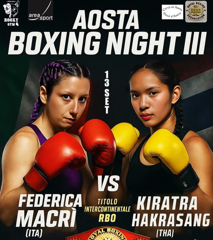La boxe torna protagonista ad Aosta. Sabato 13 settembre, al PalaMiozzi di Via Berthet, andrà in scena Aosta Boxing Night 3: una serata di emozioni e spettacolo dedicata alla promozione del movimento pugilistico valdostano. L’evento, promosso da Area Sport e ideato da Rocky Gym CRAL Cogne Aosta, è approvato dalla Federazione Italiana di Pugilato, sostenuto dal Comune di Aosta e patrocinato dal CONI della Valle d’Aosta.